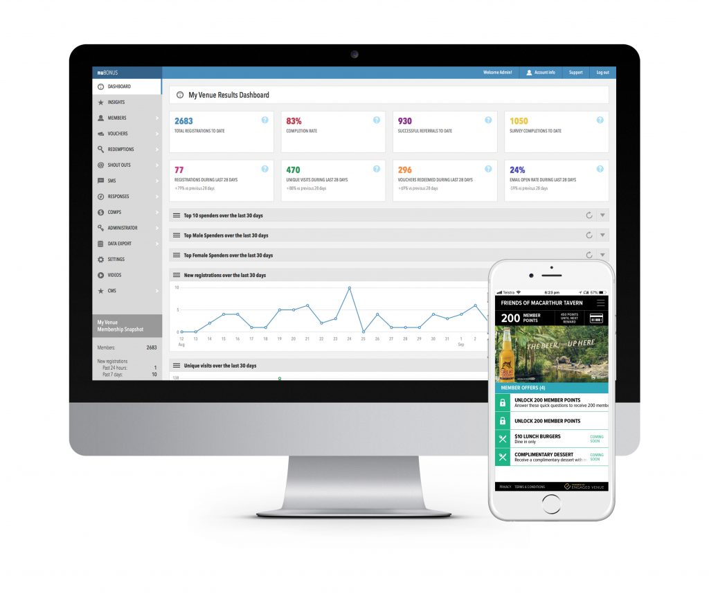 Customer loyalty, rewards and engagement product for use in the hospitality sector. Includes the following features: member registration and management, voucher creation, automated responses to customer behaviour, bulk email and SMS transition, point-of-sale system integration, instructional videos, content management, activity dashboard and business insights.
